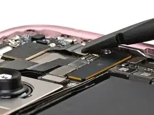 Используйте P2 пенталобный отвёртку, чтобы установить два винта длиной 7,7 мм по обе стороны от разъёма зарядки.