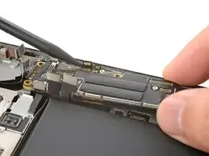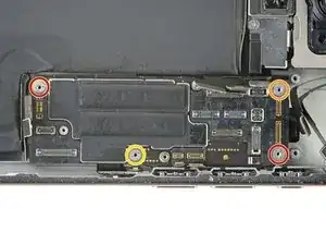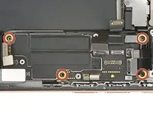На логической плате есть разъёмы сверху и снизу, поэтому для завершения ремонта может потребоваться снять экран. В этой процедуре попытка отключить логическую плату выполняется без предварительного снятия экрана. Если вы снимете экран, вам также потребуется клей для экрана.