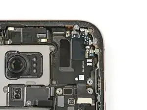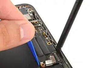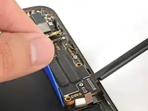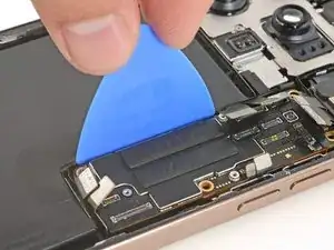 Используйте острый конец лопатки, чтобы поддеть и отключить нажимные разъёмы динамика для разговорного динамика и антенного модуля 5G mmWave.
