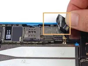 Разъёмы ЖК и дигитайзера объединены с кабелями, поэтому при использовании лопатки приподнимите кабели ЖК и отключите оба кабеля. Дважды проверьте, что оба кабеля полностью отключены перед снятием экрана.