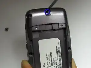 Пока телефон открыт и развернут вверх, осторожно вставьте инструмент в середину, чтобы разделить нижнюю половину телефона.