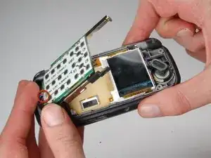 Используйте лопатку, чтобы поддеть между боковой частью телефона и логической платой, чтобы освободить её.