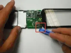 Отключите заднюю крышку, вставив пластиковый инструмент для открытия между материнской платой и разъёмом и потянув наружу.