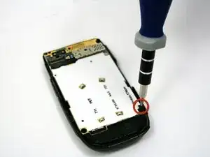 Открутите два винта Torx T5, которые легко видны на задней стороне мобильного телефона.