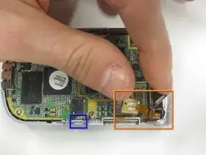 Чтобы отсоединить логическую плату от основного корпуса, отсоедините золотую ленту от её разъёма.