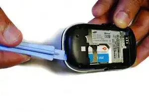 Убедитесь, что все 5 винтов удалены, и начните аккуратно снимать заднюю крышку, используя инструмент для открытия iPod в разъемах на нижней части устройства.