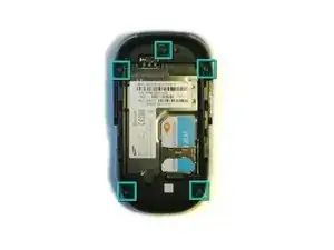 Удалите пять винтов с помощью отвертки размера 00. Четыре находятся в углах и один сверху, как показано.