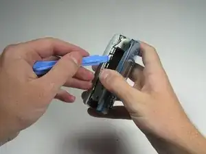 Подденьте пластиковую крышку сверху тонкой пластиковой лопаткой, затем снимите её с двух нижних защелок.