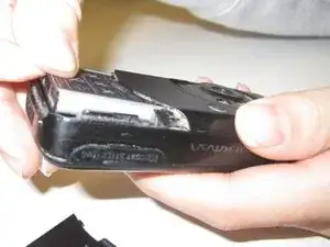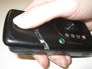 Убедитесь, что телефон выключен, и плотно нажмите на значок Cingular большим пальцем