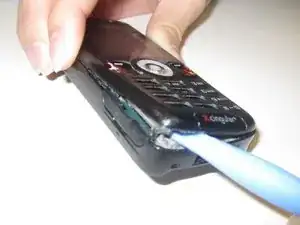 Переверните телефон и откройте переднюю панель (сторона клавиатуры) с помощью нескольких синих лопаток