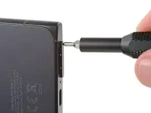 Осторожно вставьте инструмент для извлечения SIM-карты, биту или разогнутую скрепку в отверстие для лотка SIM-карты на нижнем краю телефона, пока лоток не выдвинется.