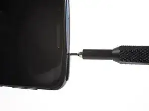 Механизм извлечения в этом телефоне расположен глубже, чем в других, и может потребоваться более длинный инструмент для извлечения SIM-карты. Если ваш инструмент недостаточно длинный, чтобы дотянуться до механизма, попробуйте использовать развернутую скрепку.