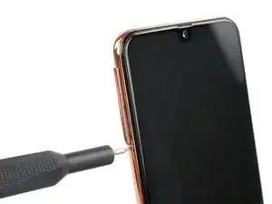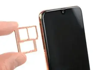 Используйте это руководство, чтобы извлечь лоток SIM-карты в вашем Samsung Galaxy A40. Извлечение этого гибридного лотка SIM позволяет добавить карту памяти microSD, заменить наноSIM-карту или добавить вторую наноSIM-карту.