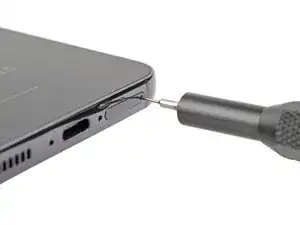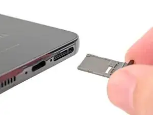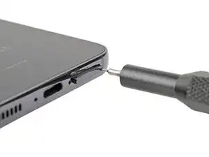 Используйте этот гид для удаления или замены лотка SIM-карты в вашем Samsung Galaxy S23.