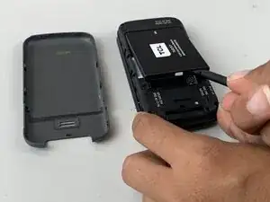 Вставьте лопатку в выемку на задней крышке и осторожно подденьте ее вверх, пока не услышите легкий щелчок, указывающий на то, что задняя крышка начала отделяться.