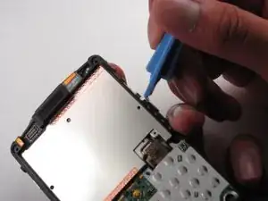 Используйте пластиковый инструмент для вскрытия, чтобы поддеть и извлечь ЖК-экран.