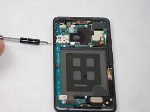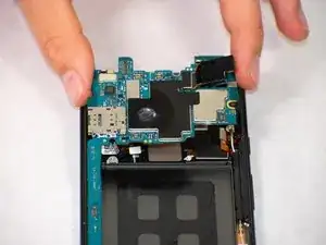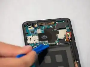 Края материнской платы часто располагаются под краем корпуса телефона, поэтому при поддевании будьте осторожны. Сначала попытайтесь отделить верхнюю часть материнской платы.