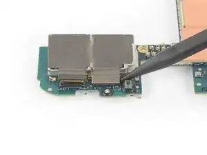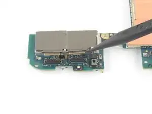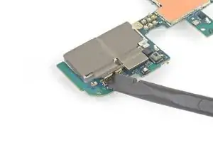 Используйте пинцет, чтобы снять ленту на телефоне, закрывающую антенный гибкий кабель.