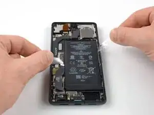 Используйте пинцет, чтобы аккуратно снять нижнюю графитовую фольгу с батареи и средней рамки.