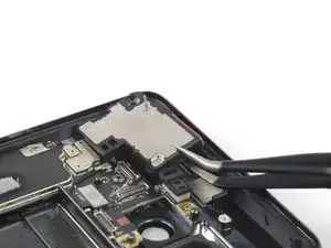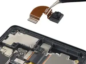 Используйте пинцет, чтобы поднять фронтальную камеру из её гнезда и извлечь её.