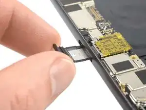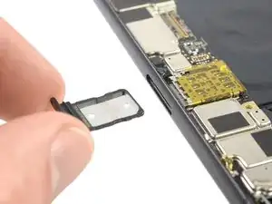 Вставьте инструмент для извлечения SIM‑карты, биту или выпрямлённую скрепку в отверстие лотка SIM‑карты.