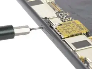 Используйте отвёртку Torx T3, чтобы выкрутить винт длиной 5,1 мм, закрепляющий материнскую плату.