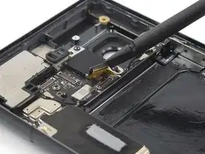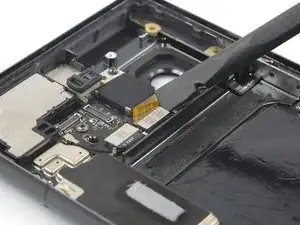 Используйте лопатку, чтобы отсоединить кабель фронтальной камеры, поддев разъём прямо вверх из его гнезда.