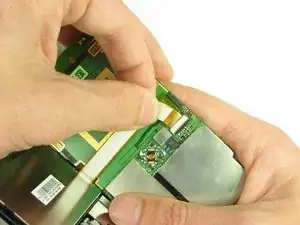 Аккуратно потяните за ленточный кабель, чтобы отделить материнскую плату.