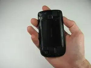 Удалите два винта Phillips #00 длиной 4,3 мм, которые крепят заднюю панель к остальной части телефона.