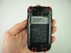 Удалите четыре винта Torx T6 длиной 4,9 мм, которые крепят заднюю панель к остальной части телефона.