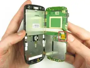 Учтите наличие ленточного кабеля, подключённого к материнской плате внутри телефона.