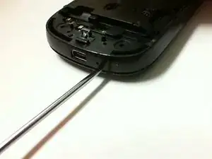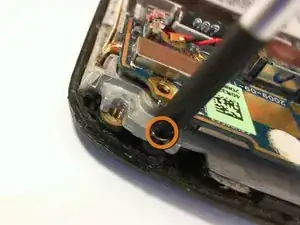 Выкрутите винт Phillips длиной 3 мм в нижнем левом углу телефона.