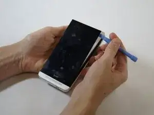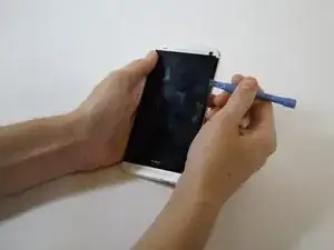 Используйте пластиковый инструмент для открытия, чтобы ослабить клей вокруг экрана.