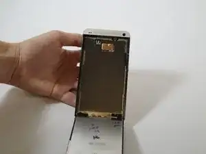 Как только экран будет ослаблен на верхнем, левом и правом краях, поднимите экран. Он останется прикрепленным внизу на петле.