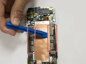 Осторожно поднимите материнскую плату из телефона, используя пластиковую лопатку.