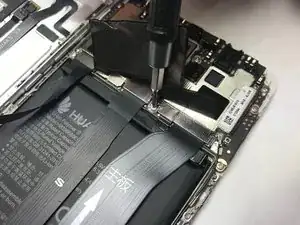 Используйте отвертку Phillips #000, чтобы удалить шесть 1,0‑мм винтов, фиксирующих материнскую плату.