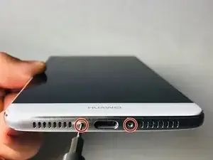 Снимите два винта T2 в основании телефона рядом с портом USB Type‑C с помощью отвертки T2 Torx.