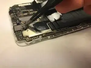 Чтобы извлечь фронтальную камеру, оторвите проводящую ткань от металлического экрана на модуле дисплея.