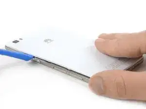 Используйте инструмент для вскрытия и начните поднимать заднюю крышку Huawei P8 Lite с нижней части телефона.
