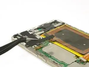 Аккуратно подденьте пластиковую крышку на левой стороне. Контакты антенны NFC могут быть слегка приклеены к крышке.