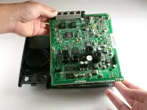 Поднимите материнскую плату из её посадочного места в передней крышке телефона.