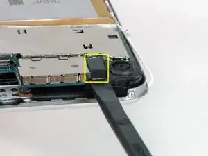 После освобождения первого разъёма продвиньте лопатку дальше в сторону аккумулятора и центра iPhone, чтобы отсоединить разъём динамика.