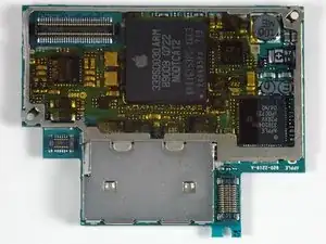 Один винт Phillips #00, крепящий материнскую плату к iPhone рядом с камерой.