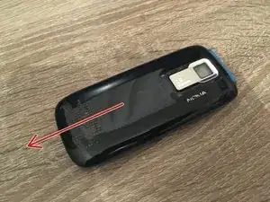Сдвиньте заднюю панель в указанном направлении, чтобы разблокировать её.