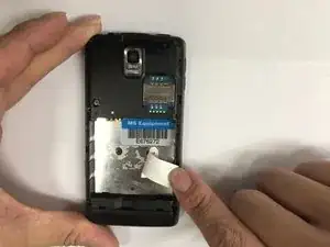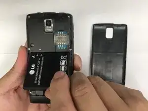 Снимите заднюю крышку, сильно нажав на треугольник и поднимая вверх.