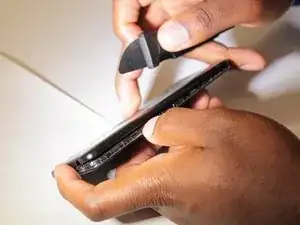 Используйте лопатку, чтобы поддеть аккумулятор и вынуть его из телефона.