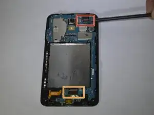 Отсоедините разъем шлейфа дисплея с помощью лопатки.