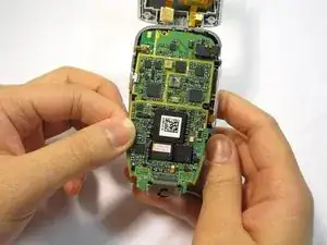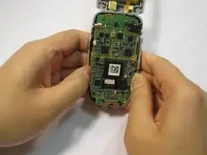 Оттяните наружную рамку телефона наружу, чтобы освободить плату от защёлок.