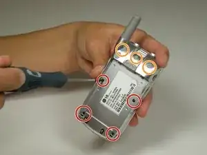 Используйте отвертку Phillips #00 и удалите четыре винта на нижней задней стороне телефона.