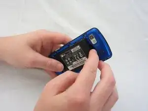 Нажмите большим пальцем на маленький выступ в нижней части телефона, затем сдвиньте вверх, чтобы снять заднюю крышку.